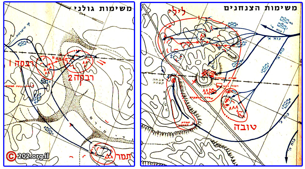 התקדמות כוחות גולני מצפון והתקדמות כוחות הצנחנים מדרום. |